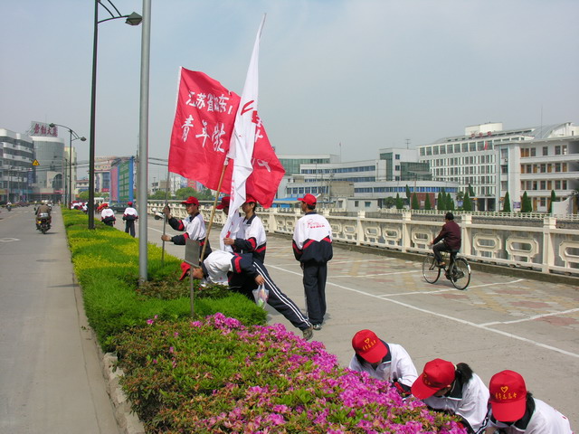 五月十四日,校青年学生党校部分学员,在江海中路举行了以“保护生态  珍爱绿色”为主题的青年志愿者活动。