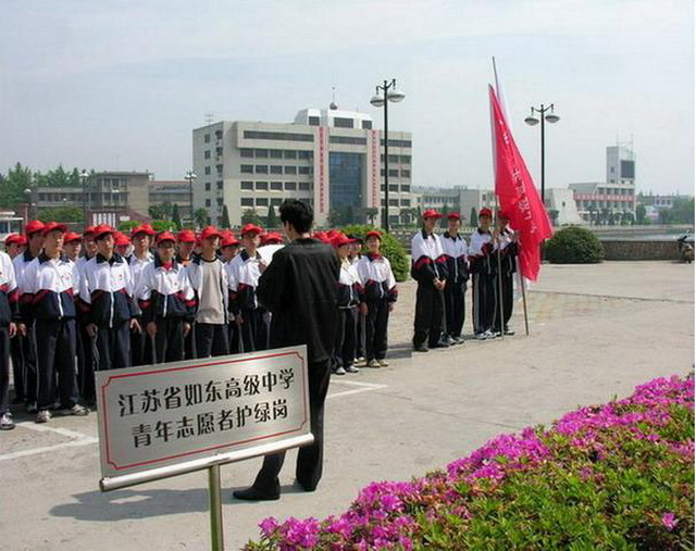 上午八时许,志愿者服务小队一行六十人来到江海中路,在为“江苏省如东高级中学青年志愿者护绿岗”举行了简短的立牌仪式后,开展了第一次护绿活动,清理整顿了绿化带中的各种杂草杂物。团县委金陵部长充分肯定了活动的价值和意义,对活动开展给予了很高的评价。如东电视台记者对活动全程进行了跟踪报道。