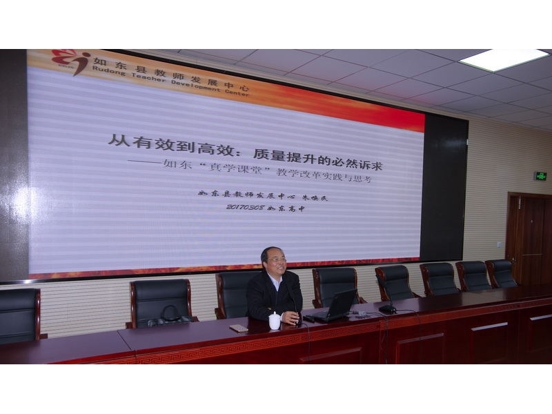 3月8日下午,我校责任督学,县教师发展中心语文特级教师朱唤民主任来校做“真学课堂”讲座。作为江苏省第28期校长跟岗培训活动内容之一,朱主任从“真学课堂”核心要素、操作要义、推进举措、建设着力点等方面倾力奉献,报告思路高屋建瓴,话语表述简明凝练,举例信手拈来,整场报告历时一个半小时,全场听众意犹未尽。省第28期跟岗培训校长、学校行政人员、高二年级语数外学科老师参加了报告会。