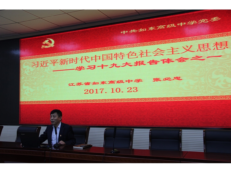 张书记要求全校党员干部要把学习贯彻习近平总书记的报告和党的十九大精神作为当前一个时期首要政治任务,采取多种形式,切实抓紧抓好。要认真研读报告文本,认真学习新时期中国特色社会主义思想的理论内涵和实践要求,把学习贯彻习近平总书记报告和十九大精神与我们学校的教育实践工作紧密结合起来,为实现十九大确立的宏伟目标和各项工作任务作出自己应有的贡献。