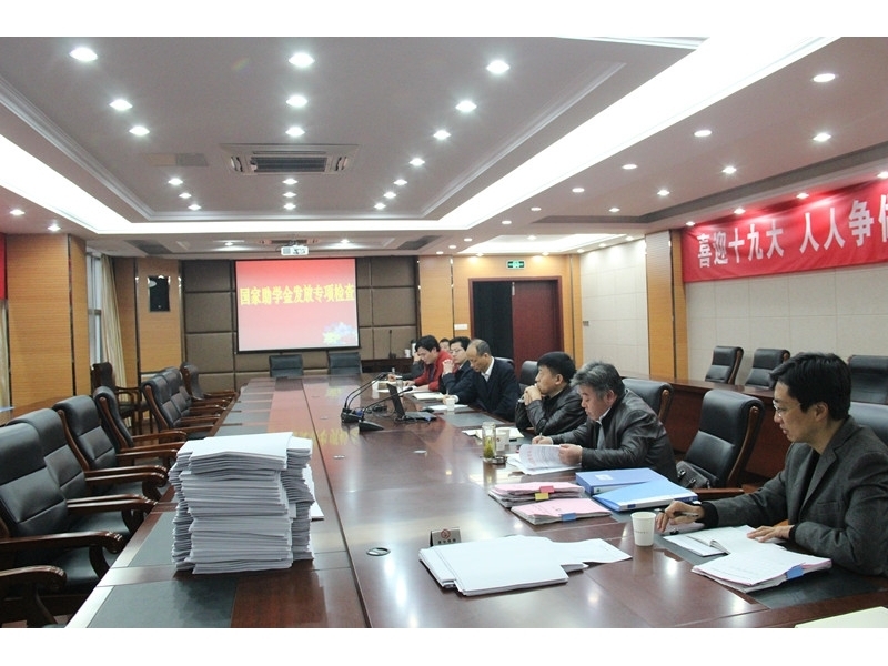 11月17日下午,县教育局人事科杨兵科长、办公室杨红兵副主任来校检查国家助学金发放、阳光助学、精准扶贫等工作。学校政教处徐守成副主任代表学校汇报了我校国家助学金发放等工作。杨兵科长对我校扶贫助学工作表示满意,并强调了该项工作政策、纪律和流程。校长室张必忠书记、马蔚副校长、管建华副校长,校长办殷飞主任,各年级主任、年级德育副主任,总务处吴军主任、万红霞会计参加检查会议。