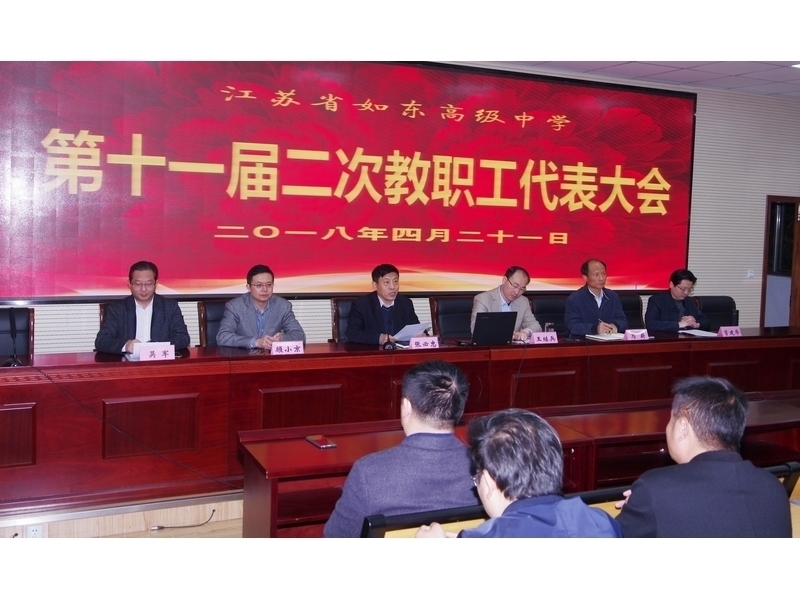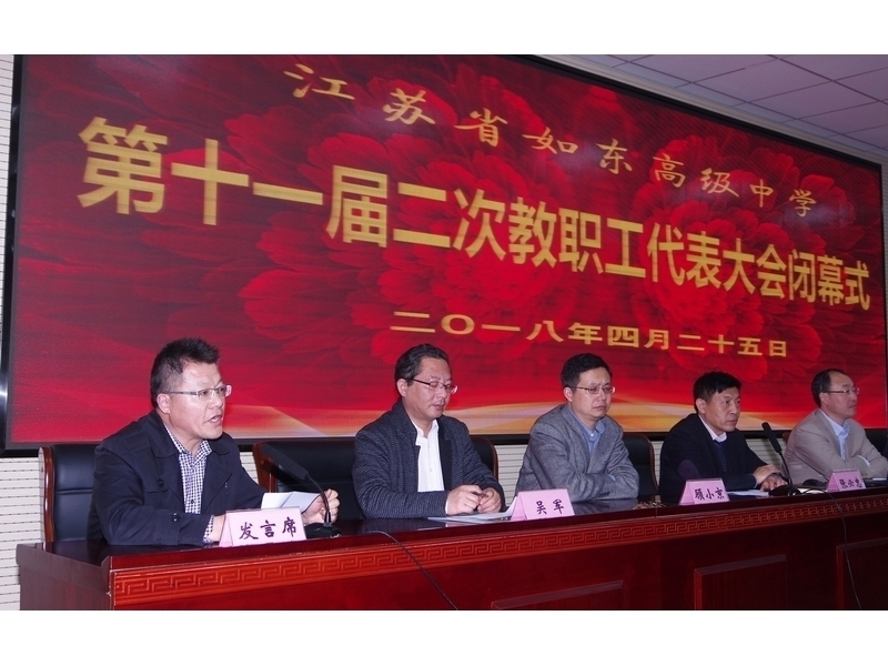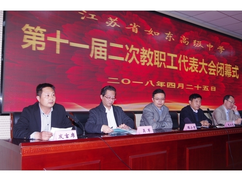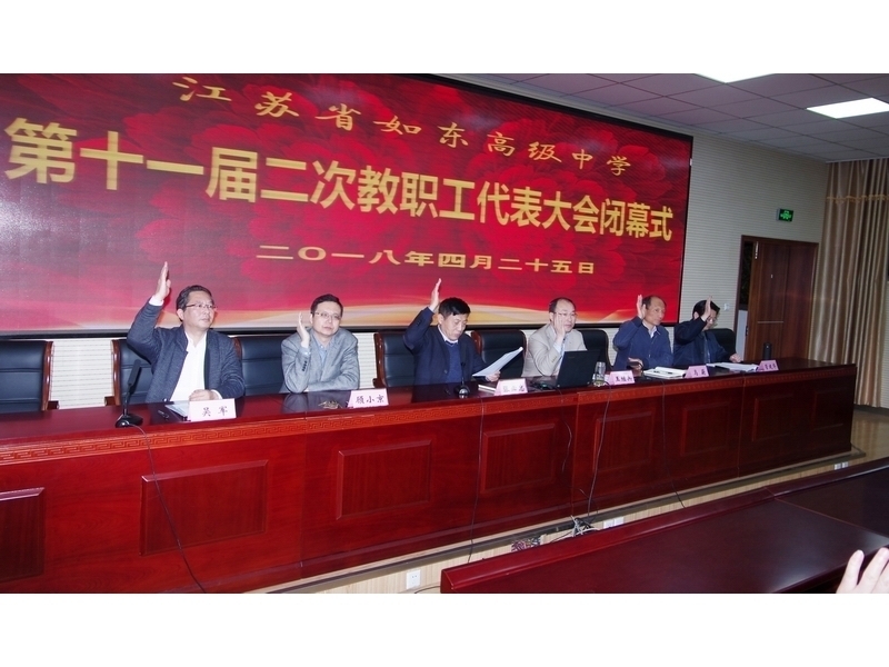 4月25日晚,江苏省如东高级中学第十一届二次教职工代表大会举行闭幕会。会议期间,各小组组长汇总通报了各组代表们分别就《学校工作报告》《进一步规范学校人事管理的若干规定》(征求意见稿)、《学校章程》(征求意见稿),以及《财务工作报告》和《工会工作报告》等问题发表的意见和看法。