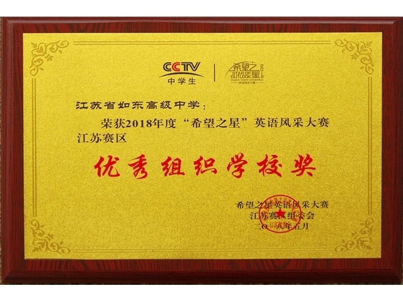 2018年度中央电视台“希望之星”英语风采大赛江苏省总决赛5月13日在南京开赛,经过前两轮的初赛和半决赛,我校共有16人参加了省决赛。现场比赛内容为才艺展示和故事接龙,这不仅考验着选手们的英语水平,更需要舞台表现、临场发挥的能力和独一无二的创意。比赛中,各位选手都积极准备,各显风采。经过紧张激烈角逐,我校张钰顾、张烨忱、赵城煜、陈姝颖四位同学获省一等奖,九人获二等奖,其中张钰顾同学获得苏北地区第一名的好成绩,如东高级中学获南通市团体最好成绩,学校也获得2018年度“希望之星”英语风采大赛江苏赛区优秀组织学校奖。获得本次比赛一等奖的同学将于5月19日参加省特等奖的角逐赛,英语组陈新燕和丛小利老师带队去南京比赛。