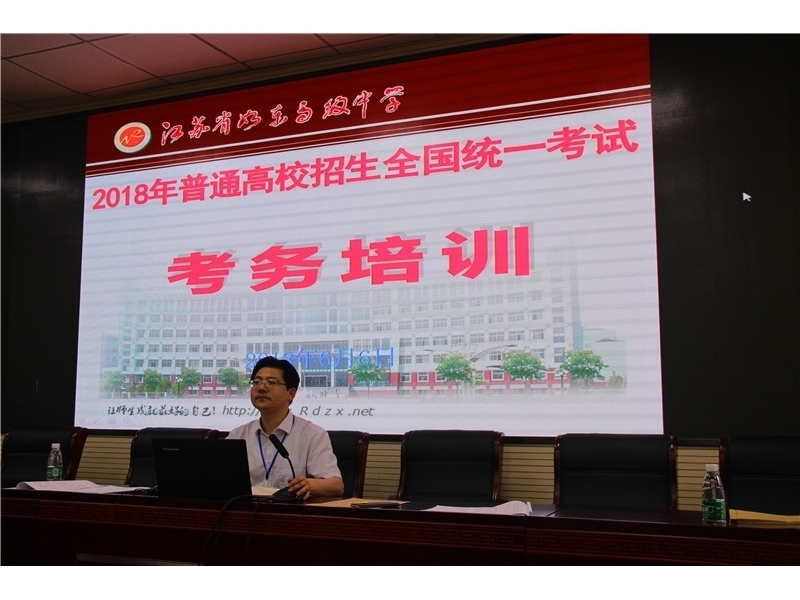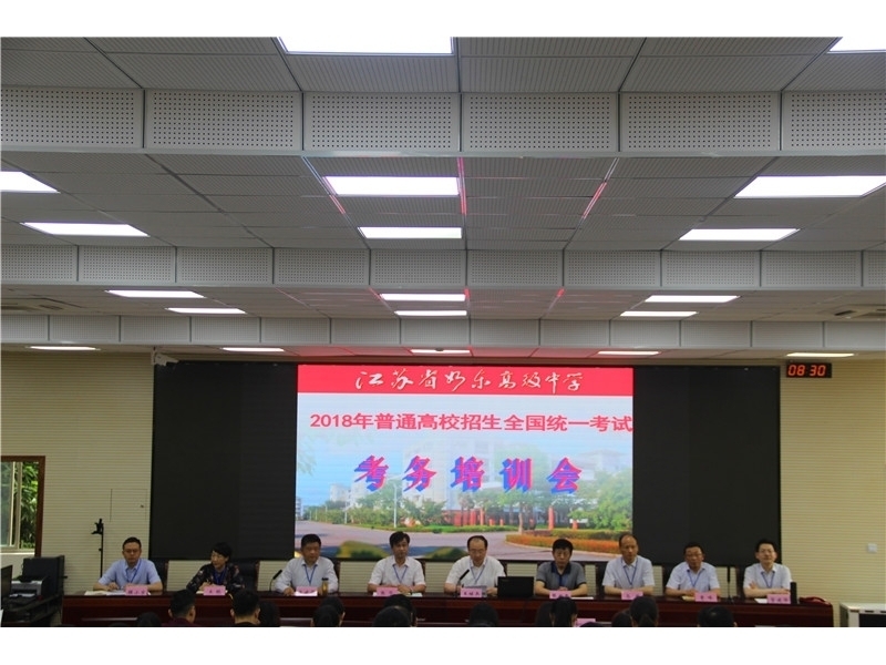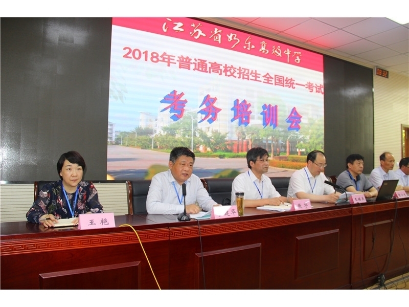 6日下午,县委书记潘建华,县委常委、宣传部长张蓉蓉,县人大副主任唐国均,县政府副县长程军、陈春柳,县政协副主席桑圣权等领导一行视察了学校考点。潘书记一行实地察看了网上巡查中心,了解了新装考试装备等,现场观看了高清监控中心的智能演示。潘书记一行还深入食堂和宿舍,了解考点后勤保障方案和举措。在听取考点负责人对2018高考考点准备工作以及一天来培训工作情况的汇报后,潘书记对我校考点考务工作准备、实施情况表示肯定,并预祝如东学子2018年高考旗开得胜、马到成功、再创佳绩。县教育局局长李建国,以及公安、供电、交通、环保等高招委成员单位负责同志参加活动。