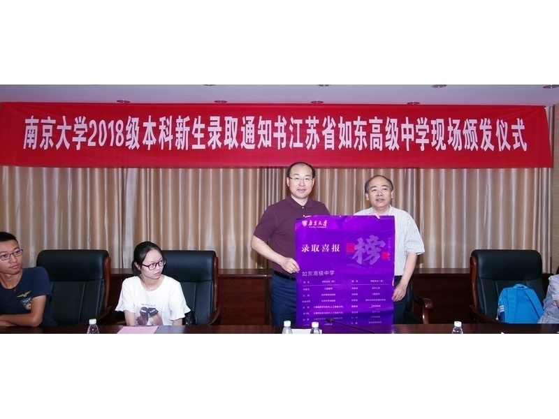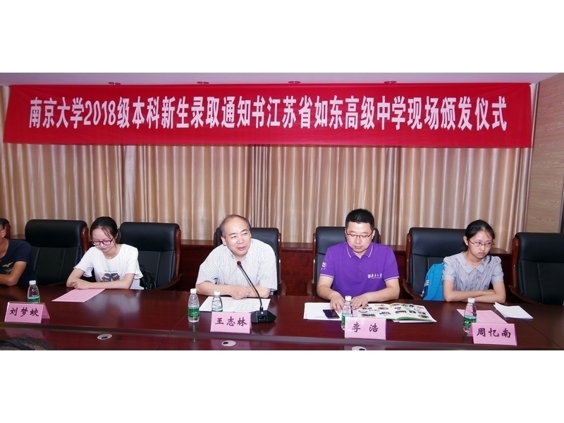 学校王继兵校长对南京大学领导的到来表示热烈的欢迎和衷心的感谢,希望今年录取南大的18位同学恪守如东中学的校训,每年都能为母校带来成长和成功的喜讯。他还希望同学们在南京大学这所著名的高校学有所成,早日成为社会栋梁、时代精英。如东高级中学一直是南京大学的优质生源基地。
