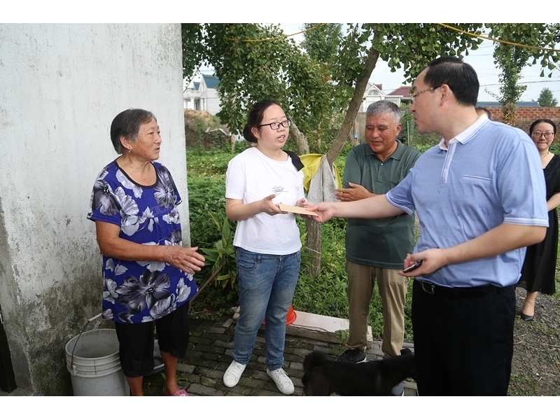 8月5日上午,学校王继兵校长、张必忠书记、魏文华主任、殷飞主任来到新店镇深河村,看望刚刚被南京医科大学临床医学本硕连读录取的蒋雨琴同学。蒋雨琴同学是我校2018届高三(5)班学生,八年前爸爸去世,妈妈改嫁后,蒋雨琴就和年迈的爷爷奶奶相依为命。在老师以及好心人的帮助下,她顺利完成了初高中学业,在今年高考中,她以386分、选修双A的好成绩,被南京医科大学临床医学5+3专业录取。本硕连读的八年时间,光学费每年就要8000多元,对于这个农村贫困家庭来说是一个天文数字。7月26日南通电视台城市日历节目组为蒋雨琴筹集6000元,社会好心人捐助9000元。这次如东高级中学为蒋雨琴同学开学送去3000元,同时,学校联系到两位社会爱心人士,在未来的八年里,每年为蒋雨琴同学分别资助3000元和5000元的学费,直至硕士毕业。蒋雨琴同学及其家人对学校的关爱表示感谢!