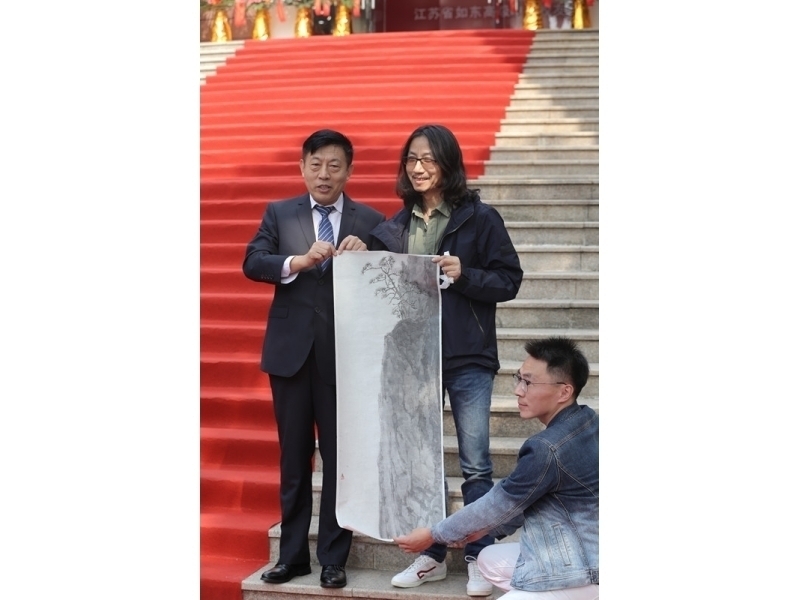 如东县人大副主任刘旭峰,政协副主席桑圣权为美术馆揭牌