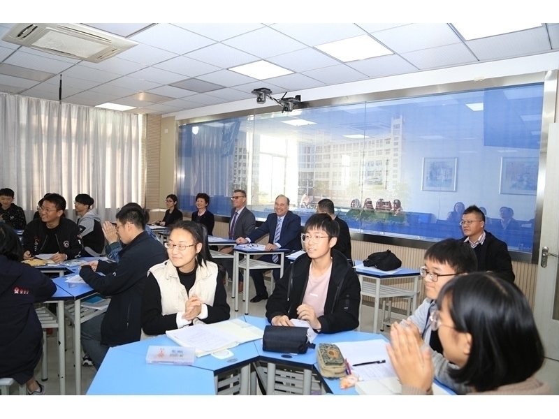 校长室全体领导在学校四楼会议室热情接待了美国客人,王继兵校长向客人介绍了我校的历史沿革。在顾小京副校长的陪同下,客人们饶有兴趣的听了许宁宁老师的英语课,他们感受中国高中教育文化,体验中国高中英语的课堂氛围。随后,大家还参观了美丽的校园。