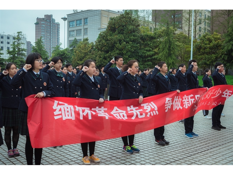 在徐溪彤同学的带领下,全体学生紧握右拳,重温入团誓词,用自己的铮铮誓言向革命先烈表示自己的决心:努力成长为社会主义事业合格的建设者和接班人。