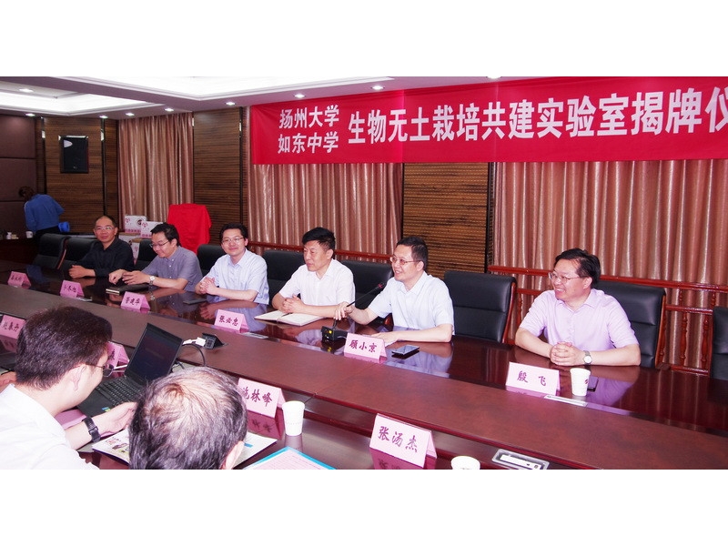 6月27日上午,扬州大学党委副书记叶柏森、党校常务副校长赵春丹一行来到我校,为我校举行扬州大学、如东中学生物无土栽培实验室共建签约揭牌仪式。张必忠书记、顾小京副校长、管建华副校长等热情接待扬州大学专家领导。