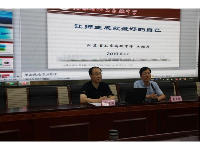 17日,苏州相城区黄埭中学领导老师一行60多人来我校交流访问。学校校长王继兵代表学校热情欢迎来宾,并与黄埭中学校长曹卫新就两校建校沿革与发展成绩做了交流。上午,王继兵校长还应邀做学校管理经验介绍。下午在分会场,学校马蔚副校长、卜冬旭副主任就教学研究与学生管理等做专题分享和交流。