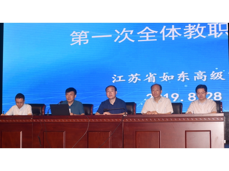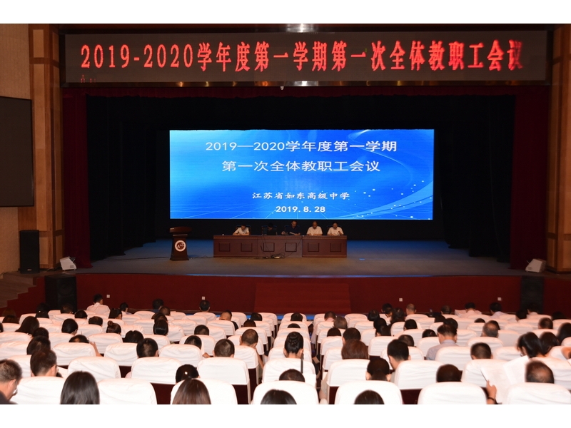 8月28日上午8:30,2019—2020学年度第一学期第一次全体教职工大会在学校海韵馆举行。