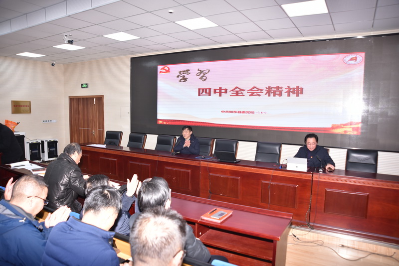 1月13日晚,学校党委邀请首届“如东社科名家”、县委党校常务副校长吴金明来校为全体党员同志宣讲十九届四中全会精神,吴校长紧扣“习近平新时代中国特色社会主义思想是马克思主义中国化的又一次历史性飞跃”这一主线,通过典型案例深入浅出向大家讲授十九届四中全会精神。
