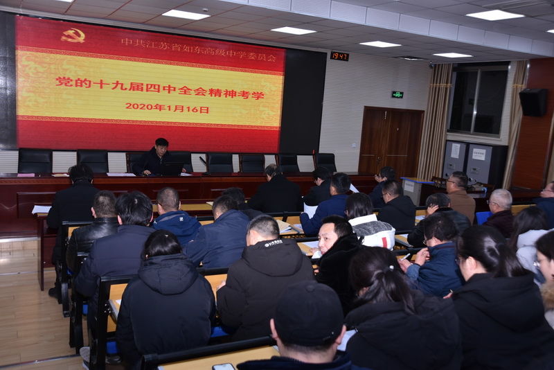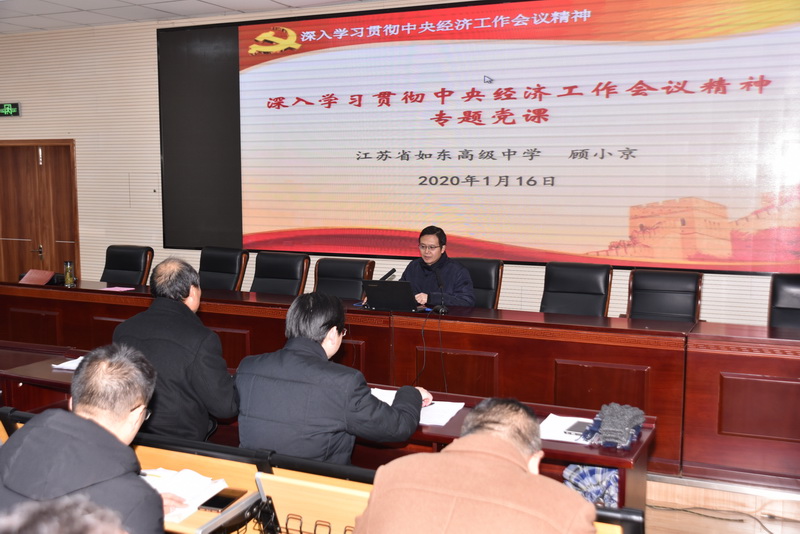 1月16日晚,党委在图书馆一楼阶梯教室召开全体党员大会。会议共分五项议程:一是顾小京副校长上《深入学习贯彻中央经济工作会议精神》专题党课;二是文科第二支部书记徐守成主任上《学习党史、新中国史》党课;三是党员干部和骨干教师举行双向培养结对仪式;四是张必忠书记组织学习《习近平总书记在“不忘初心、牢记使命”主题教育总结大会上的讲话》;五是全体党员同志参加十九届四中全会精神考学。