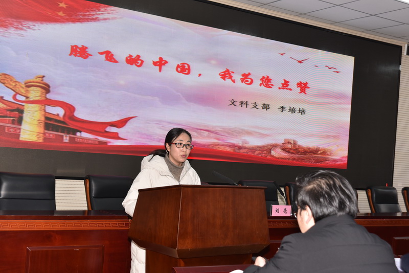 1月17日下午,学校党委召开全体党员会议。一是三位支部书记进行抓党建工作述职;二是进行“点赞中国之治”主题演讲,文科第一支部周林老师、张丹丹老师和文科第二支部瞿倩波老师、季培培老师从不同角度切入,为中国之治点赞。