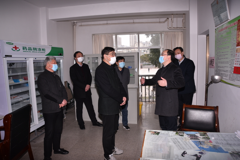 陈主席一行实地察看了学校的医务室、隔离室以及开学疫情防控物资准备情况,实地体验了学校提前购置的门框式红外线测温仪,听取了王继兵校长对疫情防控和开学准备情况的工作汇报,王校长从学校疫情防控工作方案的制订与执行、校级班子成员疫情防控工作分工、线上教学的准备与实施、师生生活轨迹和健康信息摸排收集、防控物资储备情况等方面进行了详细汇报,重点就学校线上教学方式作了介绍。