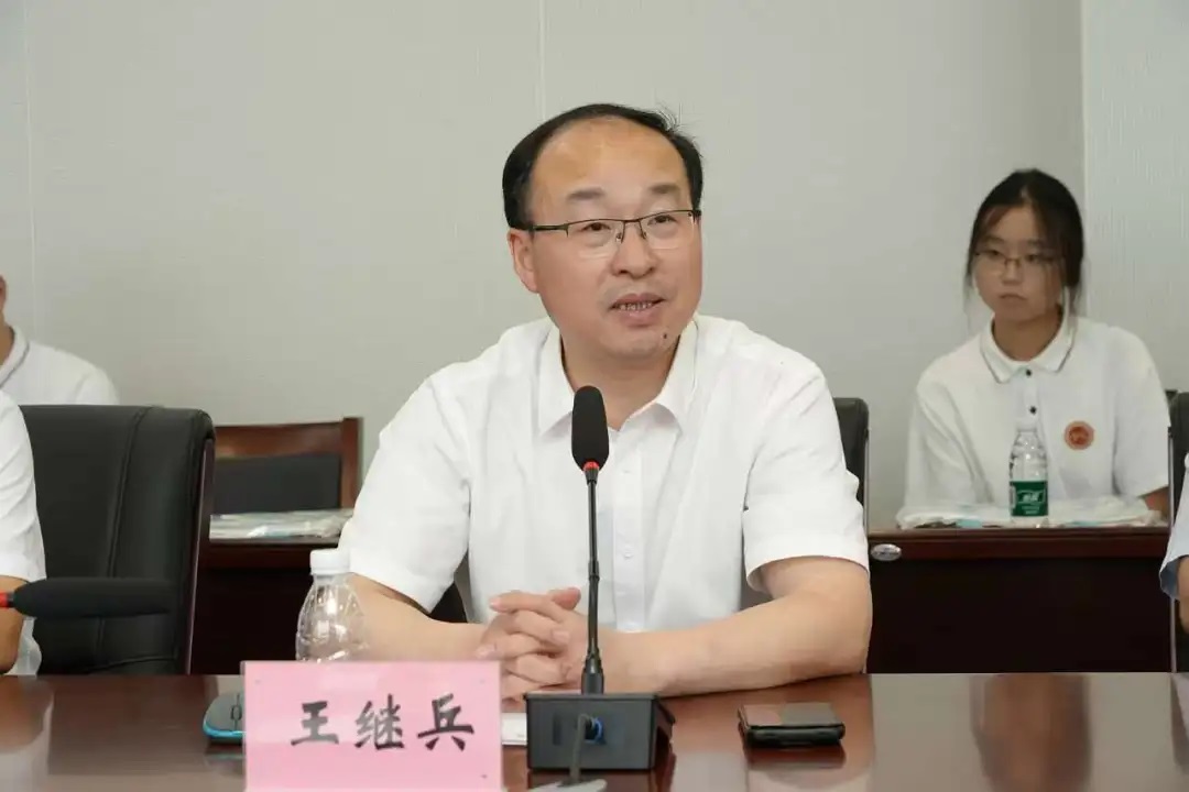 观看江苏大学形象宣传片后,王继兵校长致欢迎辞,对江苏大学领导的到来表示诚挚的欢迎和衷心的感谢,对考取江苏大学的同学表示热烈的祝贺。王校长从学生均衡发展、创新人才培养等方面介绍了近年来学校的办学情况,并期望与江苏大学在国际交流与合作、内涵品质提升、教师队伍建设等方面加强合作交流,勉励18名录取江苏大学的同学牢记江苏大学的“博学、求是、明德”校训,刻苦学习,勤奋钻研,早日成为国家栋梁之才。