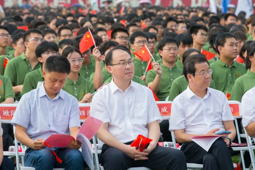 东南大学党委书记左惟,中国科学院院士、东南大学校长黄如等校领导和中国科学院、中国工程院院士代表等出席开学典礼。王继兵校长作为东南大学未来领军人才培养战略合作中学校长代表,与全国各地其他受邀校长代表一起共同见证东南大学13540名本硕博新生开启大学校园新生活。