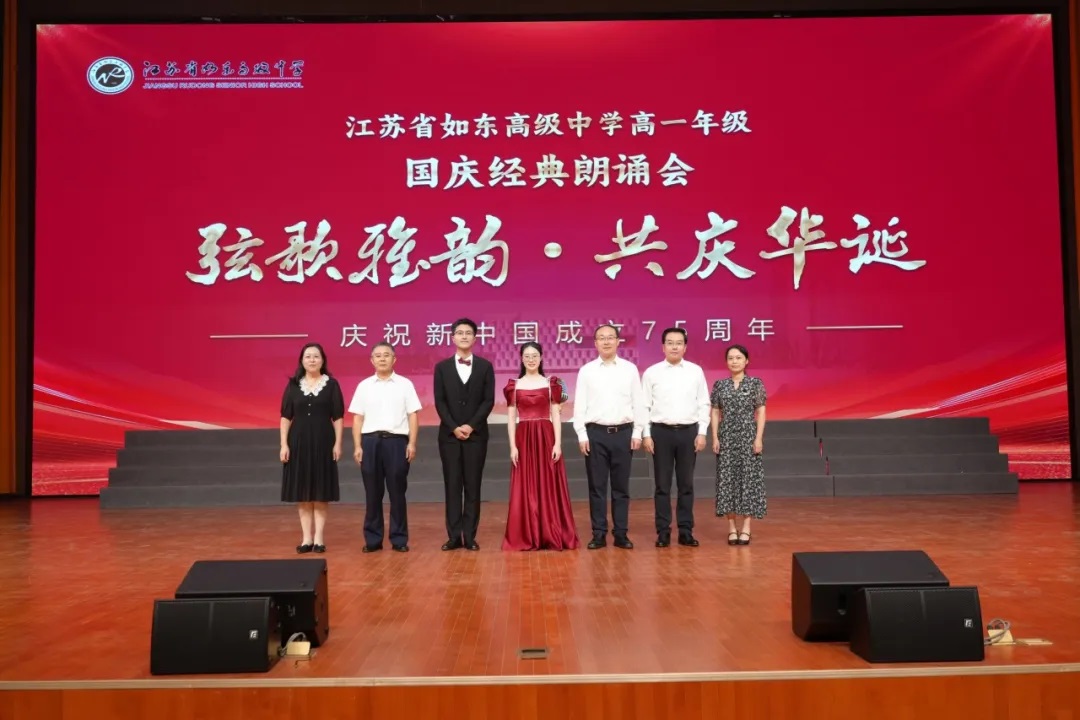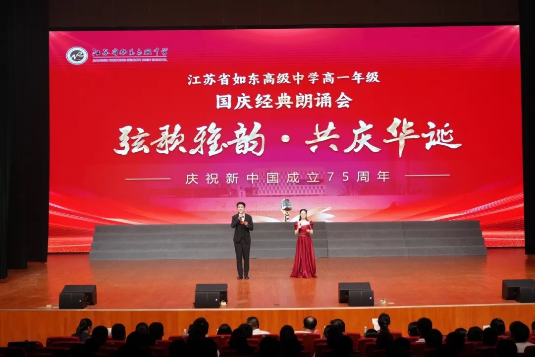 庆祝75载辉煌盛世,吟诵中华民族经典!9月29日晚,江苏省如东高级中学高一年级在海韵馆成功举办了主题为“弦歌雅韵·共庆华诞”的国庆经典朗诵会。