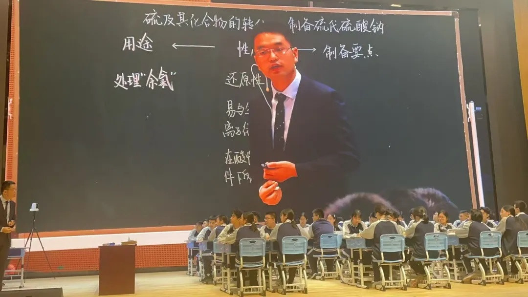 在季雨豪老师备赛过程中,学校领导高度重视、全力支持,组建校内教练团队,安排化学教研组经验丰富的老师对其进行协助与指导,同时邀请校外专家对课堂进行精细打磨,加深学科理解。教练团队帮助季老师完善教学策略,在磨课过程中,全组教师认真研讨,从教学环节的设计到任务的设置,再到时间的分配,都进行了细致的推敲。组内年轻教师则充分发挥技术优势,搜集相关教学资源,为课堂增添了丰富的素材,如找到硫元素在自然现象中的视频资料,辅助教学。