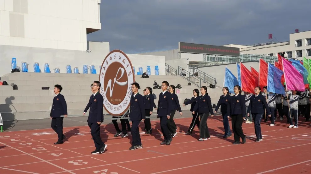 校旗队、校徽队。飘扬的旗帜,象征着如中师生开拓创新,勇往直前的精神风貌;庄严的校徽刻写的是如中人追求卓越、永争第一的顽强信念。