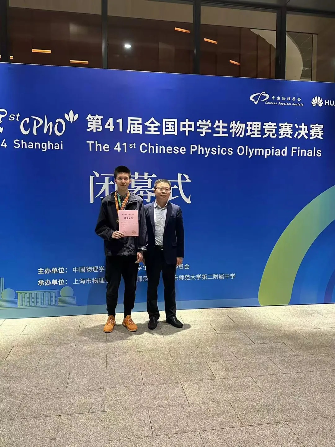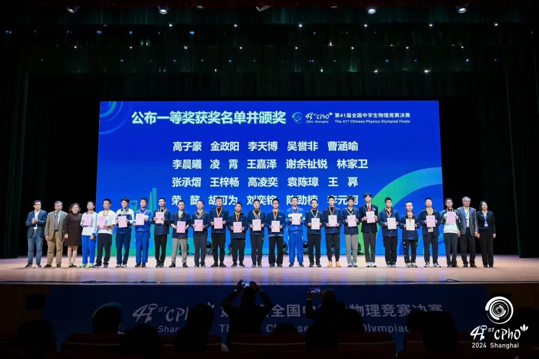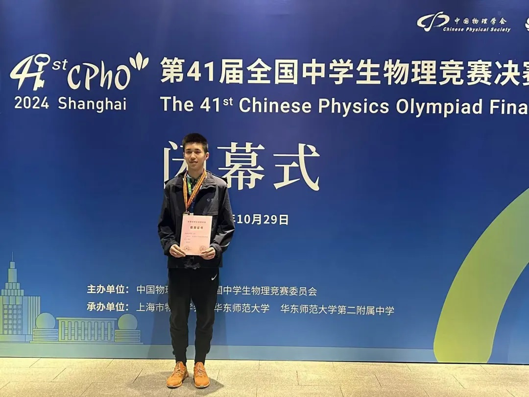今天我能站在这个璀璨的舞台上,我要感谢我的学校,感谢我的教练褚小坤老师,是他带着我走上了物理竞赛之路;我要感谢我的同伴,我的家人,谢谢有你们的陪伴和鼓励。我和物理竞赛结缘是在一年半之前,起初学物理竞赛是为了在高中物理的基础上扩展视野。真正激励我在这条道路上越走越远的是去年第40届物理竞赛复赛中我拿到了省级赛区一等奖,这让我看到了更多的可能。在接下来的一年中,我开始更系统、更广泛地获取物理竞赛相关的知识。这一年我既学习学校课程中的高考内容,又学习物理竞赛方面的知识,有时也会有时间冲突的困惑,但能支撑着我继续前进的是心中的信念,为中国高水平科技自立自强贡献属于我们的力量。我相信物理竞赛带给我的不仅仅是奖牌和荣誉证书,更是永不服输拼搏向上的精神力量,我将带着这些感动和回忆继续前进!(袁陈璋)