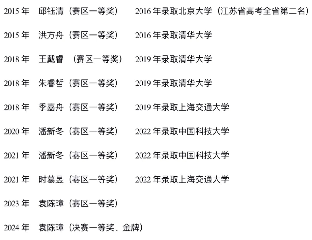 2015—2024年,我校共有10人次获得物理竞赛赛区一等奖及以上奖项。