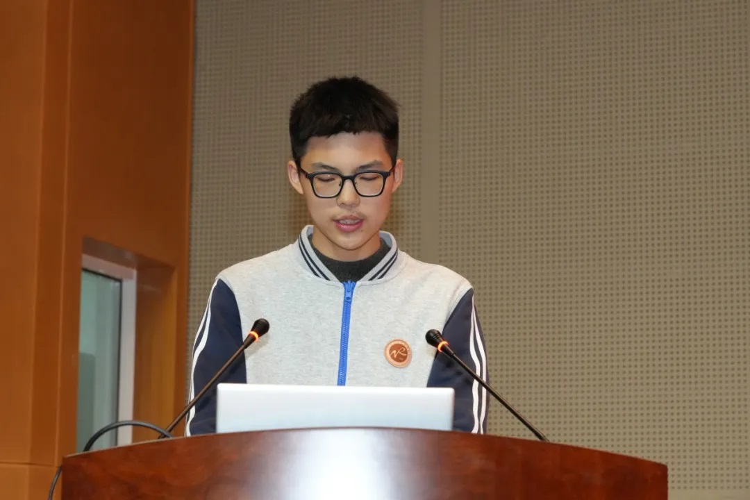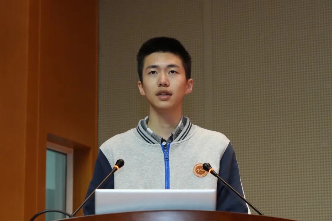 袁陈璋同学发表获奖感言。他回顾了参加比赛的过程,感谢学校、教练和同伴、家人们,并祝福每一位竞赛道路上的追梦人前程似锦。