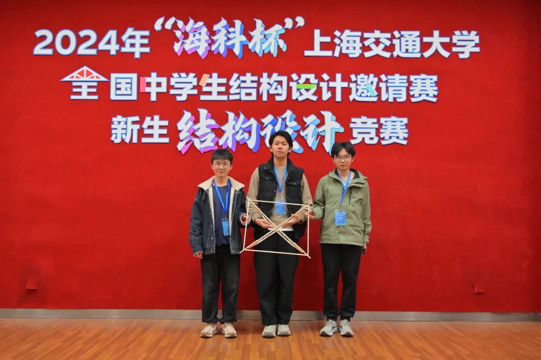 近日,第二届“海科杯”上海交通大学全国中学生结构设计大赛在上海交通大学圆满落幕。我校高二年级组建的如日东升队(路遥、徐王羽、吴星泽)、望舒队(薛叶南、王楷滔、韩正阳)代表学校参赛。