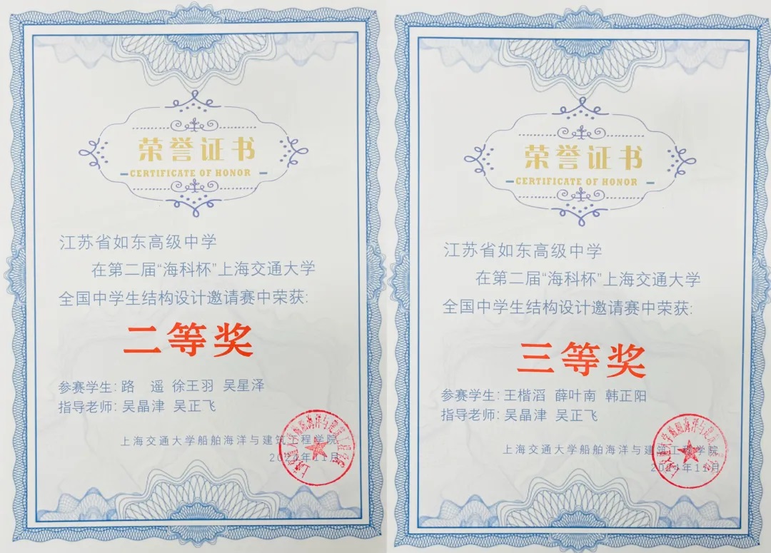 热烈祝贺我校学子在第二届“海科杯”上海交通大学全国中学生结构设计大赛中斩获佳绩
